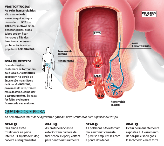 - Sangramento: hemorroidas internas podem sangrar se não forem tratadas adequadamente.
